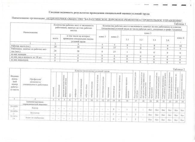 Сводная ведомость результатов проведения специальной оценки условий труда