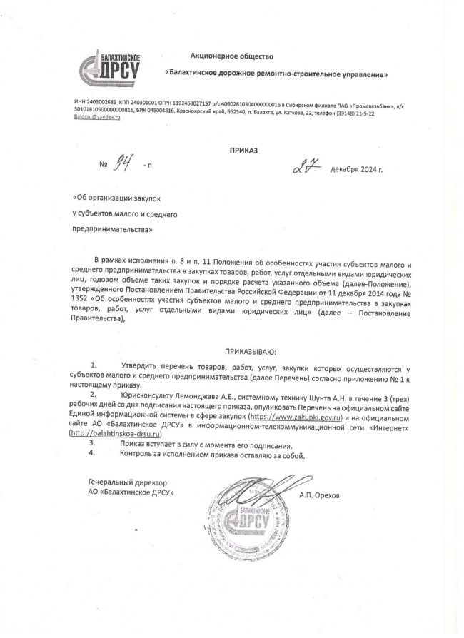 Выборы 2024. АО «Балахтинское ДРСУ»
